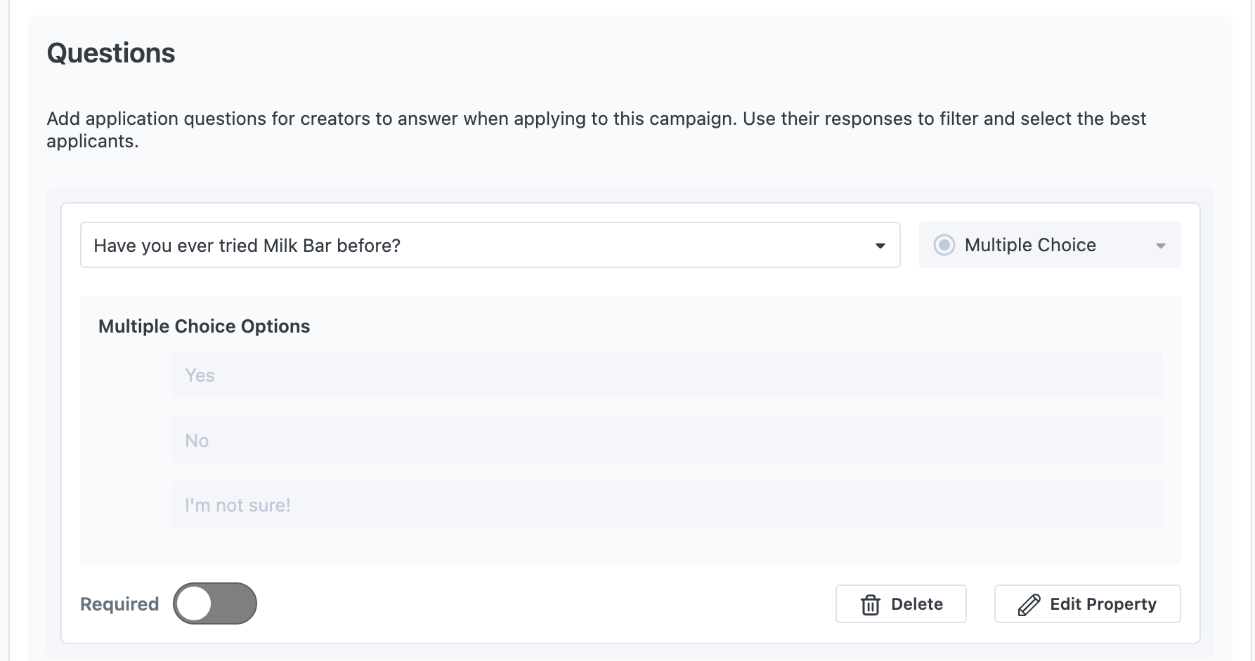 Recommended: Require Instagram authentication for campaigns with Instagram deliverables. But avoid requiring any social profile that not all creators will need — for instance, if only a few creators will post on TikTok, making TikTok authentication mandatory may prevent creators from applying.