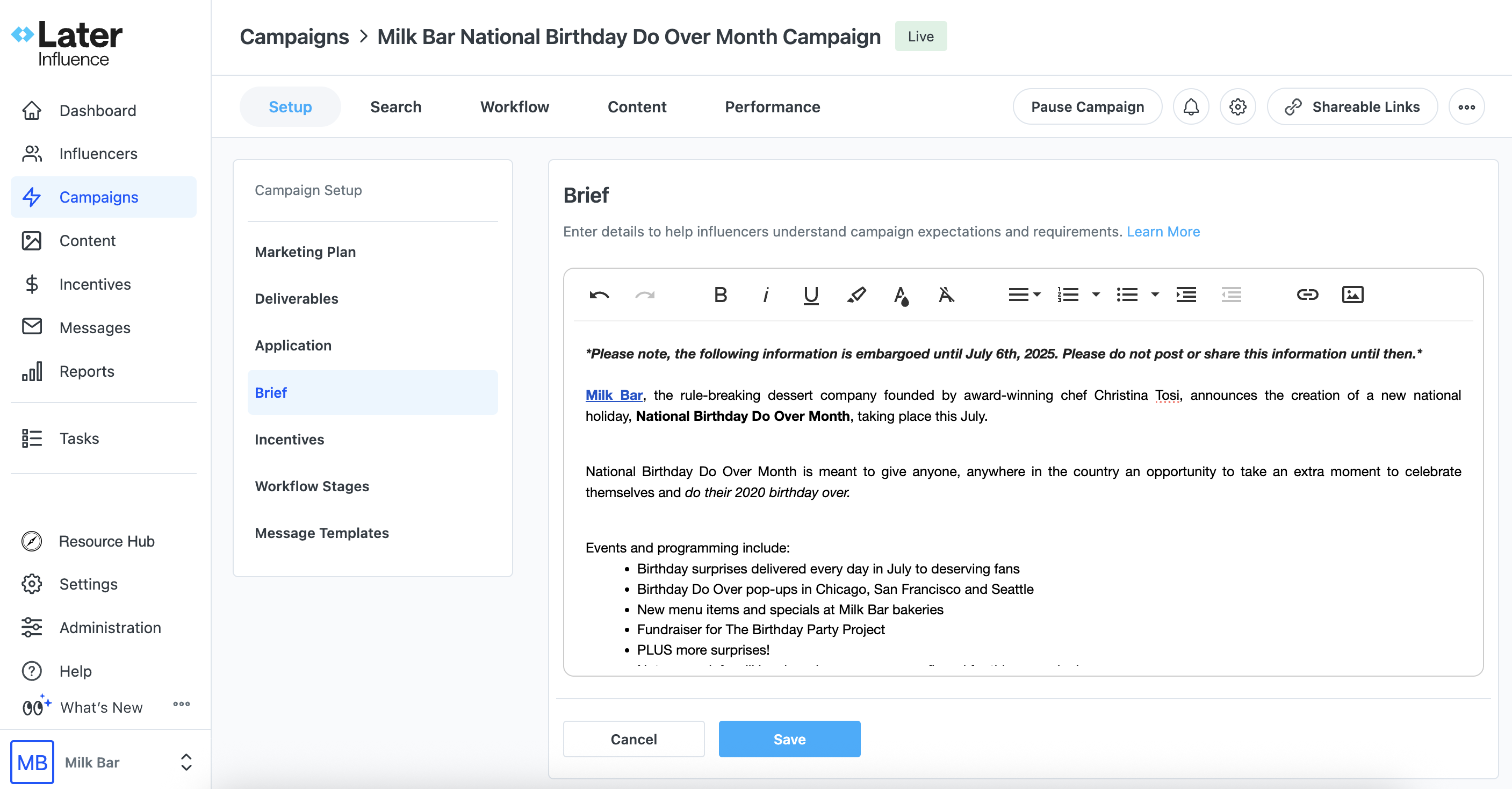 Your campaign brief is one of the more important creator-facing documents. It ensures every participant understands expectations before producing content.